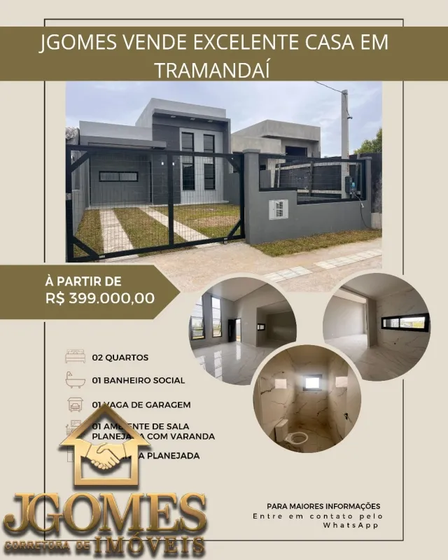 Excelente oportunidade para você que busca conforto, modernidade e ótima localização em Tramandaí! ???? Características do imóvel: 80 m² de área construída Terreno 7 x 30 m 2 dormitórios, sendo 1 suíte Banheiro social Sala de estar e jantar com pé-direito duplo, trazendo mais iluminação e sofisticação Churrasqueira Rebaixo em gesso Esquadrias em alumínio preto (design moderno e durável) ✨ Imóvel com excelente padrão construtivo, ambientes bem distribuídos e projeto que valoriza conforto e estética. ???? Valor: R$ 399.000,00 Ideal tanto para moradia quanto para investimento. Entre em contato e agende sua visita. Imóveis com esse padrão e valor vendem rápido!