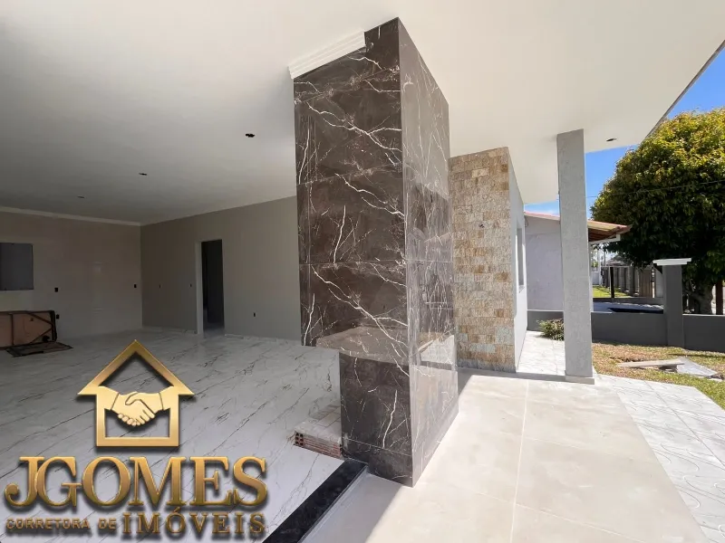 -PISCINA -Terreno 12x25 -3 dormitórios (1suite) -2 banheiros -lavabo -Cozinha -Sala de estar e jantar -lareira -Área de serviço -Abrigo 2 carros -145 metros quadrados -Porta de entrada de alumínio ripado -restante das abertura alumínio preto -cerca de vidro transparente -Laje maciça -telha de concreto plana -Documentação apta a financiamento bancário -Aceito parcelamento direto -Aceito imóvel na troca